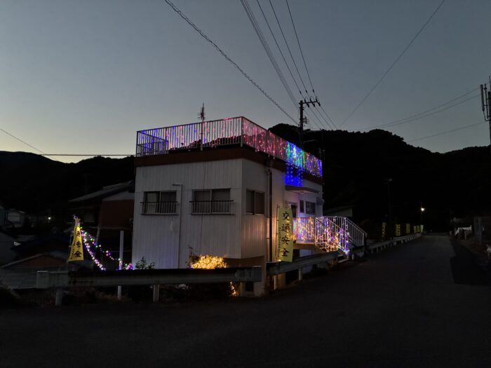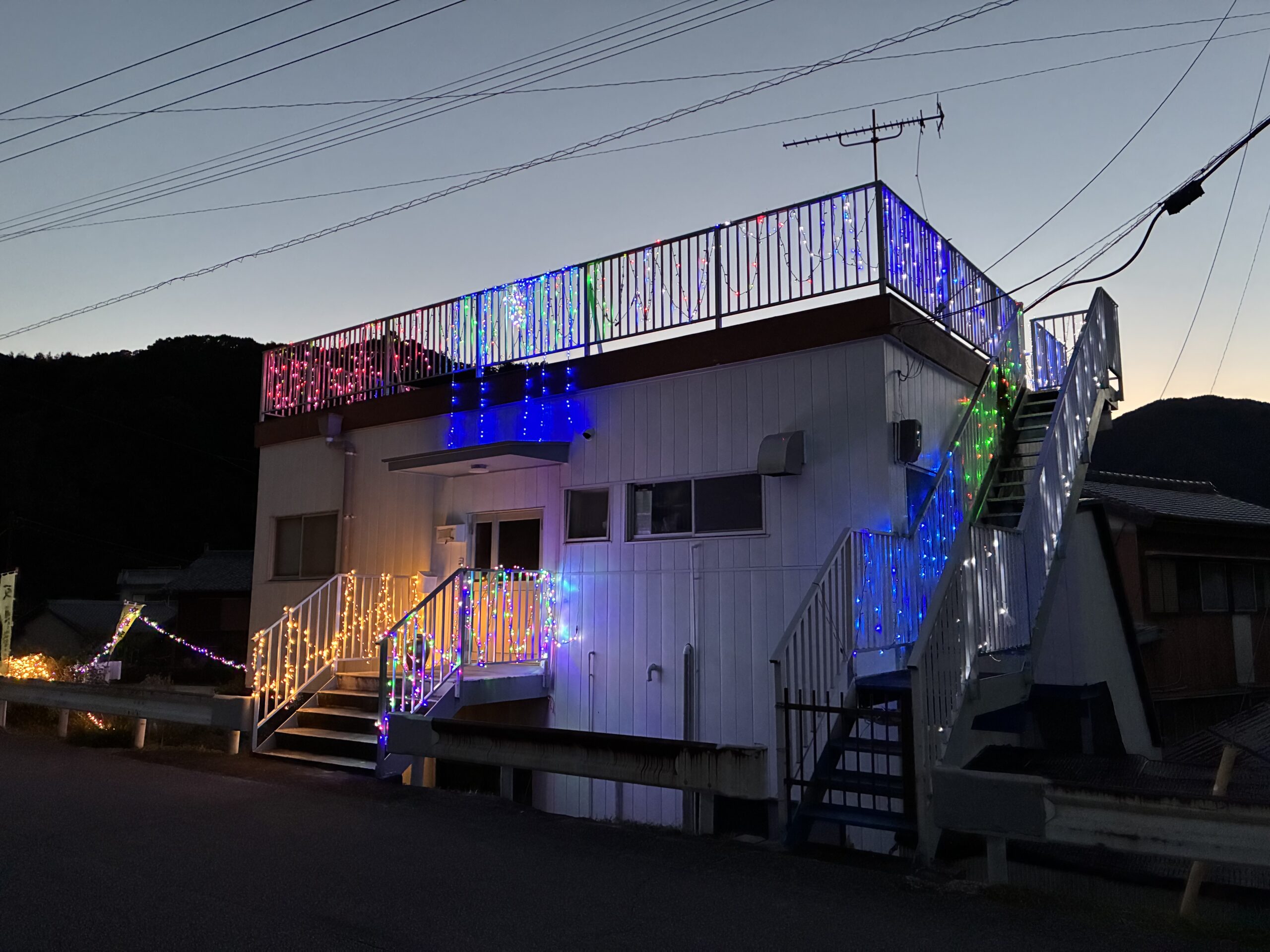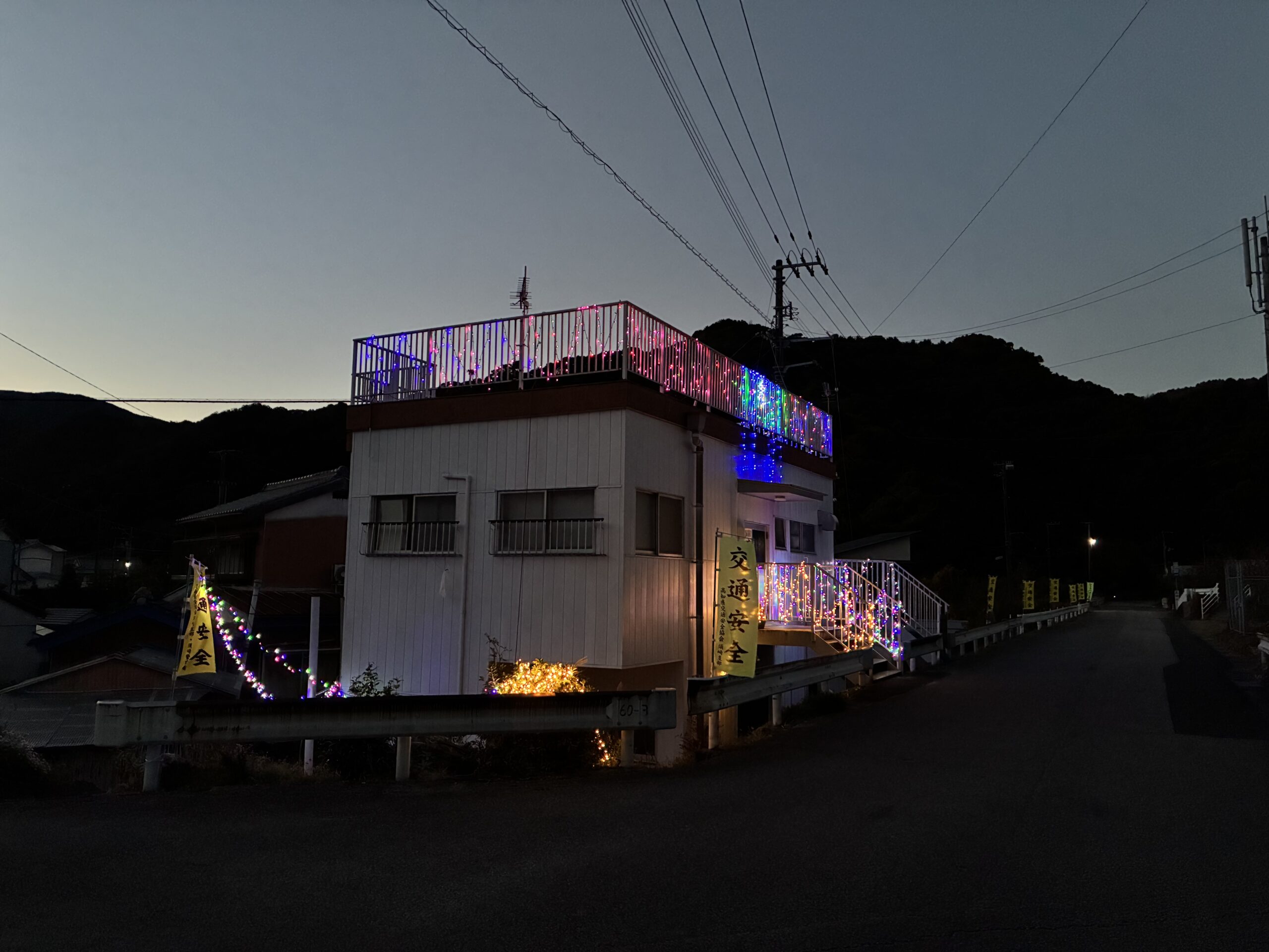 中土佐町矢井賀の夜道を優しく照らすイルミネーション。 この明かりを灯しているのは、地域のために活動を続けている「矢井賀をよくする会」のみなさんです🌟